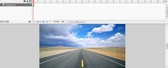 2. Import gambar jalan (File-Import-Import to Stage), sesuaikan ukuran gambar jalan dengan ukuran stage background, misal 550×400 px
