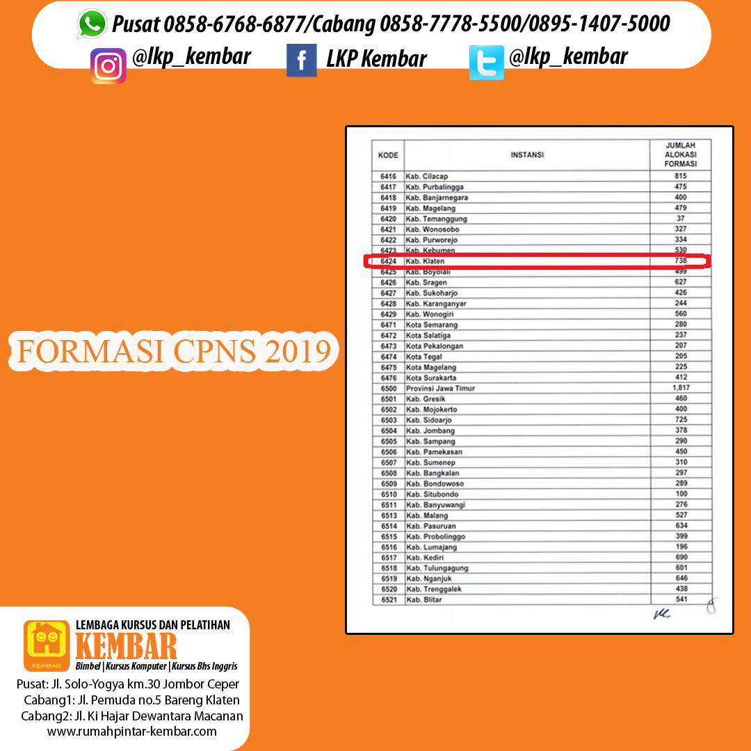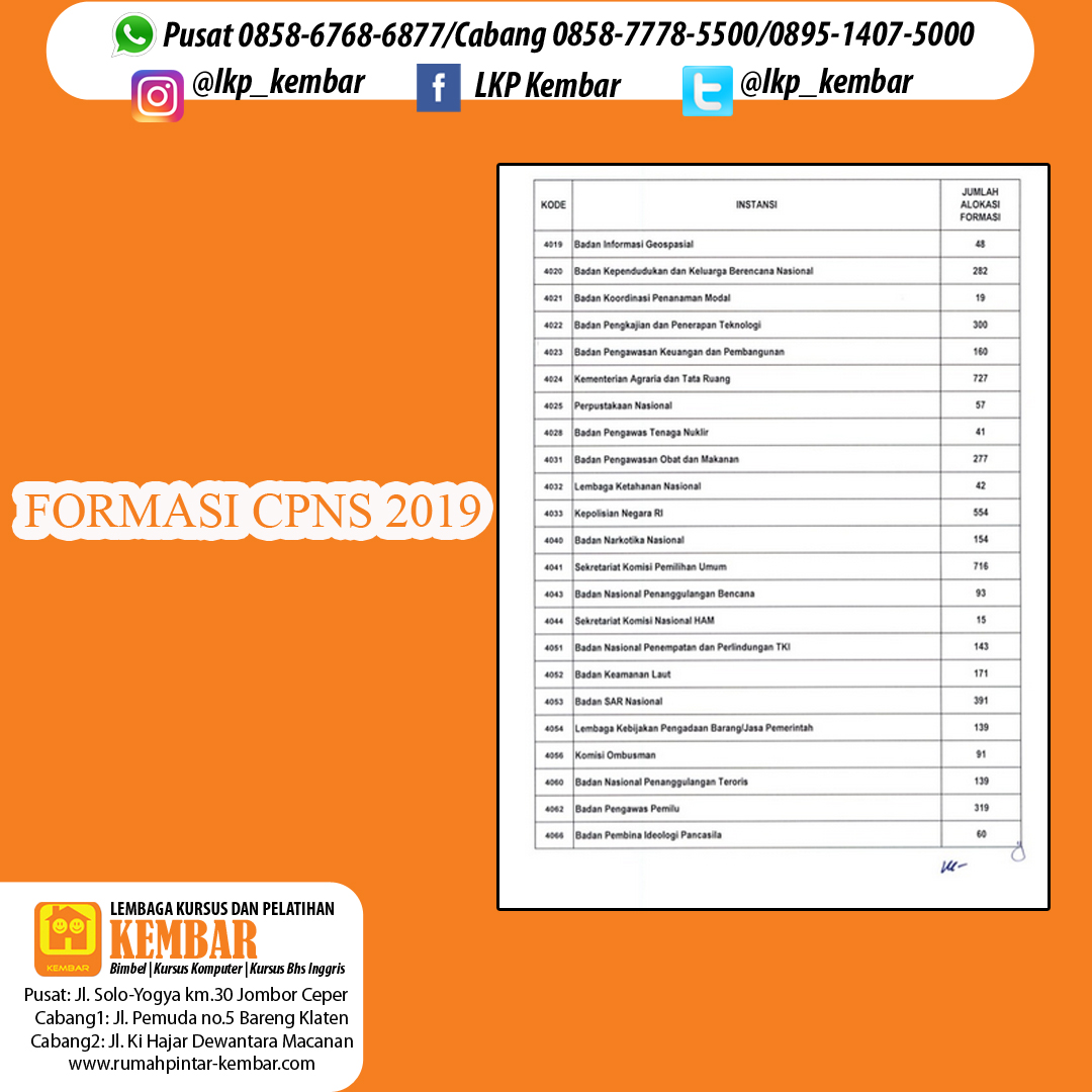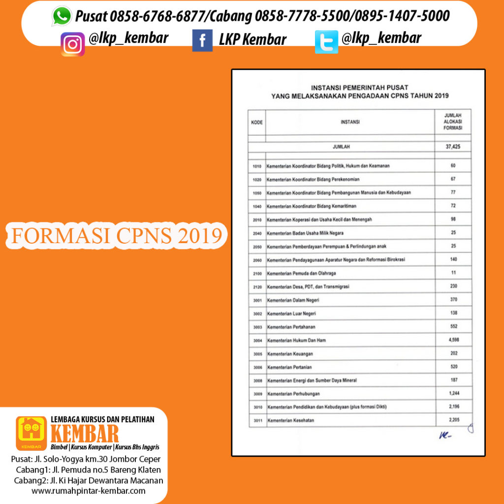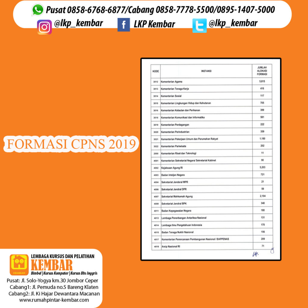 Simak terus postingan LKP KEMBAR ya karena kami akan selalu membagikan informasi terbaru untuk pendaftaran CPNS 2019.
