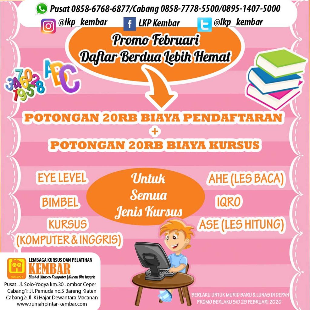 Langsung daftar segera ke LKP KEMBAR Cabang terdekat dan Dapatkan PROMONYA !!!