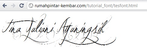 6. Buat skrip HTML (hanya contoh saja untuk mengetes apakah font sudah bisa dipakai) seperti berikut:
