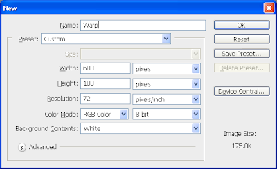 Pertama-tama kita perlu membuat file baru, dalam contoh di bawah ini kita membuat file berukuran 600 x 100 pixel