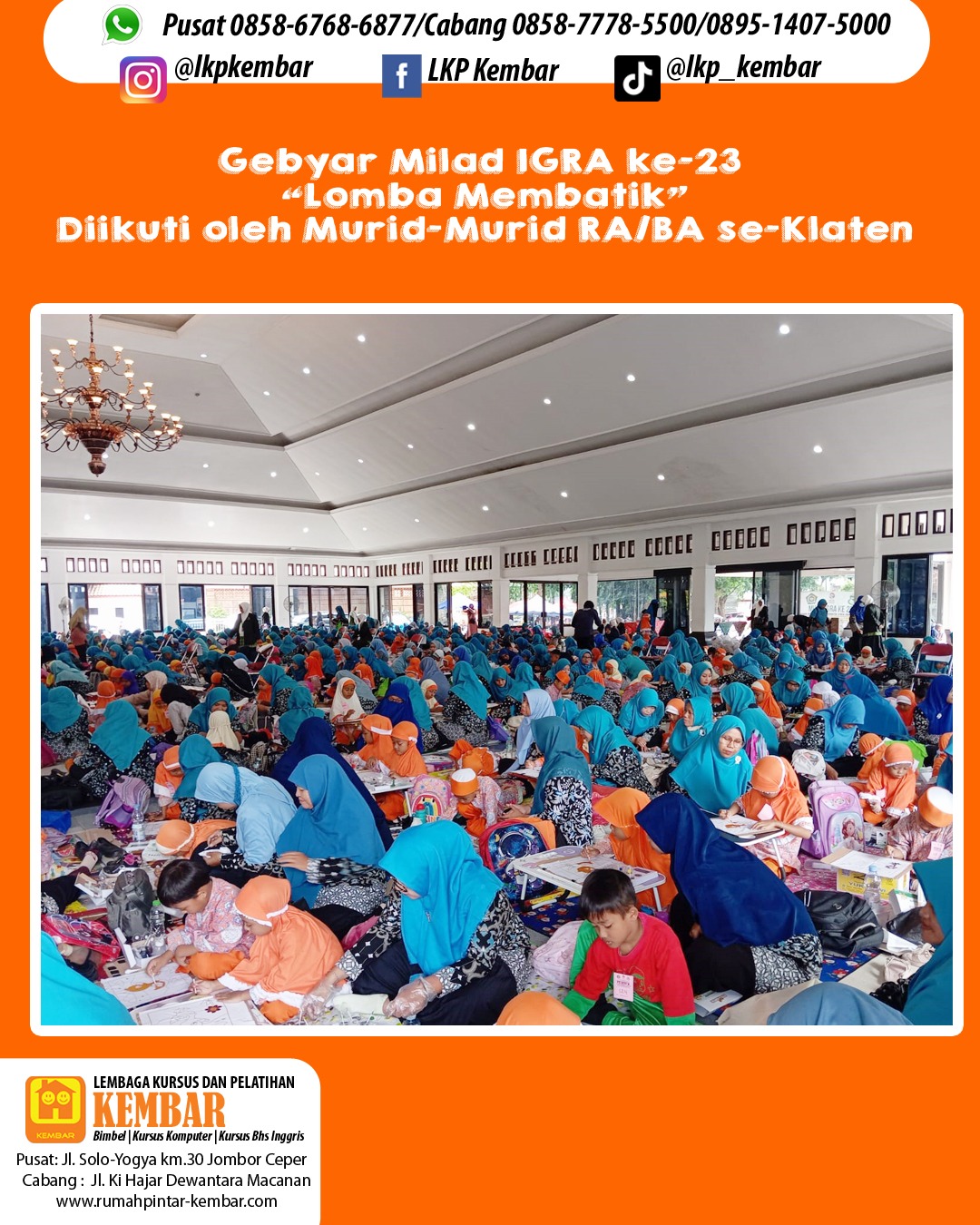 Hari Rabu 26 November ada acara Milad igra ke 23 tahun yang di selenggarakan oleh PD IGRA Kabupaten Klaten