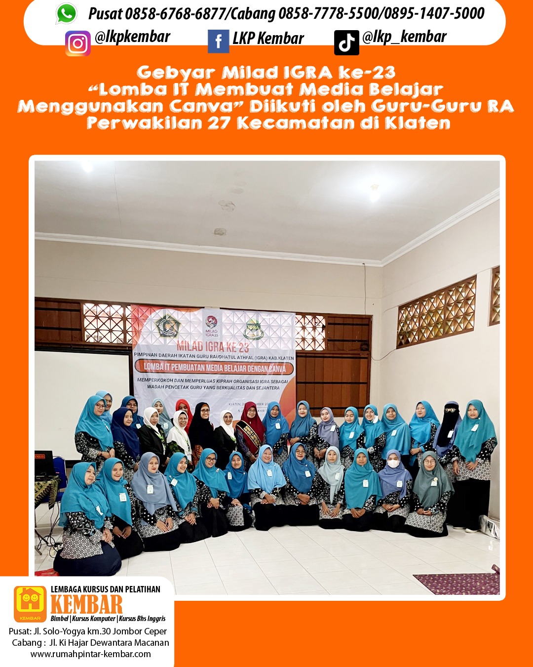Lomba IT yang diikuti oleh 27 guru RA/BA yang merupakan perwakilan dari masing-masing kecamatan yang ada di Kabupaten Klaten.