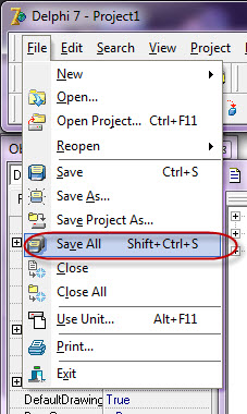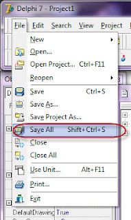 – untuk melakukan save pada delphi 7 dapat dilakukan dengan save all untuk save form dan save project