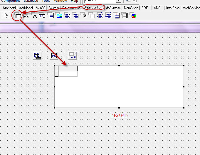 – pilih dbgrid lalu tempatkan apda form seperti pada gambar diatas