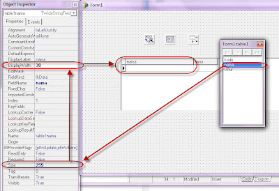 – pada gambar display width dirubah menjadi 30 sehingga pada dbgrid field name memendek hanya 30 karakter