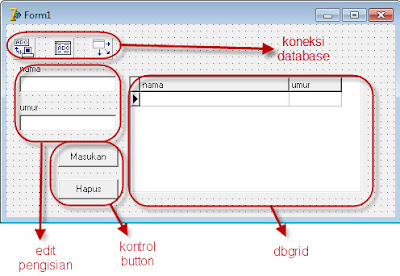 – buat form yang terkoneksi dengan database dan memiliki tampilan sebagai berikut: