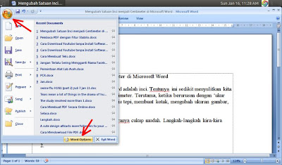 - Klik logo MS Word di pojok kanan atas, klik Word Options