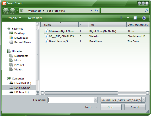 6. Pilih file lagu yang Anda inginkan. Biasanya file lagu berekstensi ,mp3.